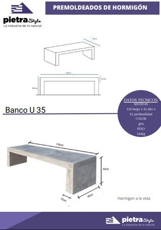 La combinación de diseño moderno, durabilidad excepcional y aplicación versátil hace del Banco U40 de hormigón reforzado la elección perfecta para proyectos que buscan calidad y estilo duradero.